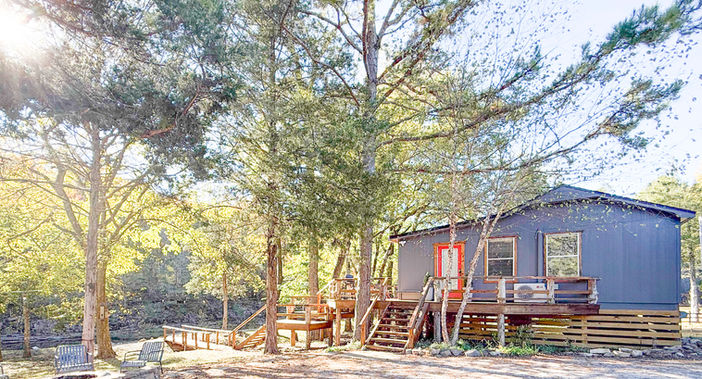 Skip Rock Cottage overlooks the clear waters of beautiful Livingston Creek, a spring-fed stream that runs year round and meanders through the Ozark National Forest. The cabin sleeps 4 in two bedrooms, each with queen bed, and has a full kitchen, as well as a full bath with stand up shower and an ensuite half bath.